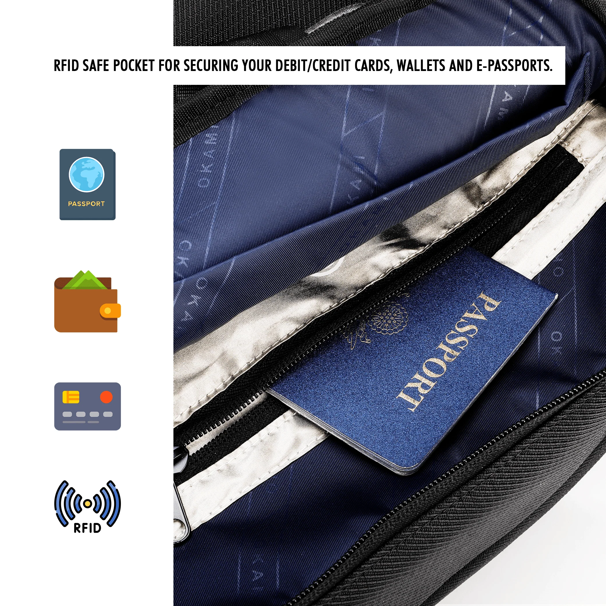 RFID Protection from Data Theft - Advanced Organiser with RFID protection, RFID safe pocket protects your data from financial and identity theft through Debit/Credit Cards, e-passports, and other RFID-enabled accessories.